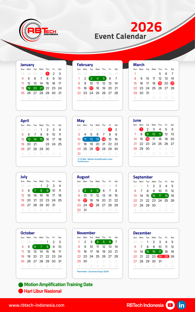 Untuk mendapatkan kinerja terbaik dari Motion Amplification®️ dalam perangkat RDI Technologies IRIS M™️, IRIS MX™️, dan IRIS CM™️ Anda, kami berkomitmen untuk memberikan pelatihan penggunaan secara menyeluruh agar Anda dapat memaksimalkan kinerjanya. Kami memiliki materi, alat bantu pelatihan, dan fasilitas untuk menunjang kenyamanan dan kemudahan pelatihan bagi Anda. Namun, pelatihan tetap dapat dilakukan dimana saja sesuai keinginan Anda. Kami dengan senang hati akan mengunjungi fasilitas Anda untuk menyampaikan materi training.
